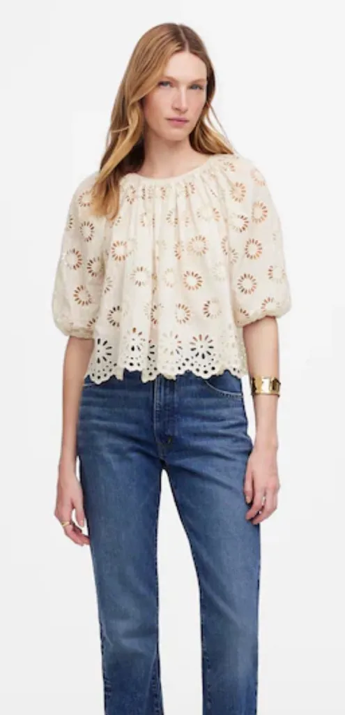 Madewell Embroidered Shirred Puff-Sleeve Top Floral Eyelet Size Xtra Small Embroidered with flora... Show more