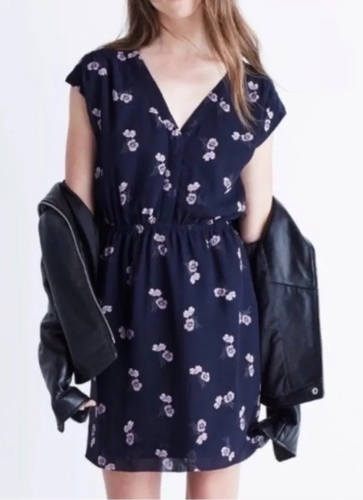 Chic and comfortable floral navy dress perfect for any occasion. Features a flattering V-neck and sh... Show more