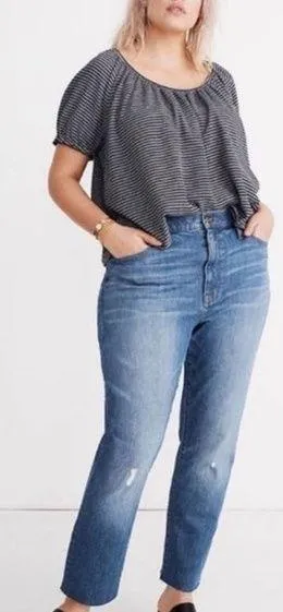 Madewell High waist Blue in color Whiskered Cropped Button and zip closure Boyfriend fit Pockets Cot... Show more