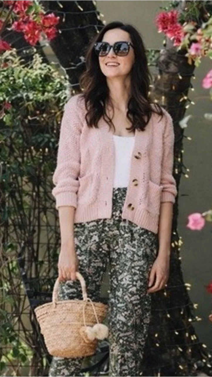 With classic fisherman details and an artfully patterned rib, this 100 percent cotton sweater is destined to be a front-of-the-closet cardigan you'll wear every season. (P.S. It has pockets...) A stylish addition to any wardrobe, perfect for those who embrace the cottage core chic style. This long-sleeve sweater features a V-neckline and a solid pink color, making it versatile for various outfits. Made of comfortable cotton material, it is designed for regular size women in medium size. The sweater embodies themes of art, bohemian, coastal, classic, 90s, feminine, and preppy, making it a unique and fashionable choice for the modern woman.