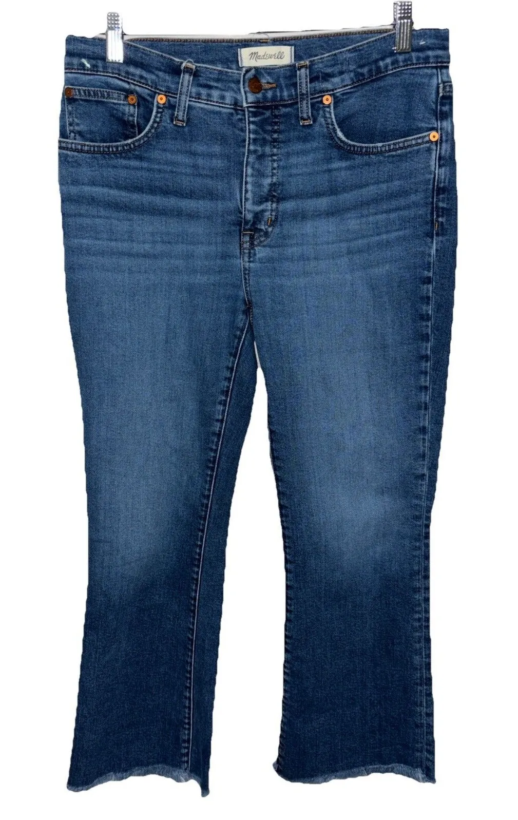 These Madewell Jeans feature a trendy kick out with a raw hem, perfect for a casual yet stylish look... Show more