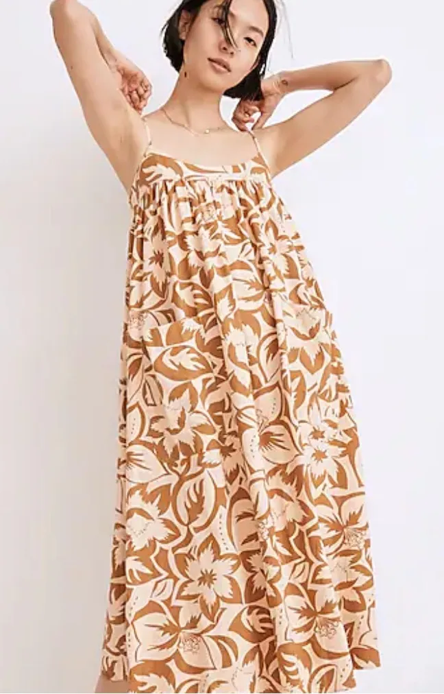 tropical print, this cami midi dress has oversized patch pockets in front and a peekaboo back. Cut w... Show more