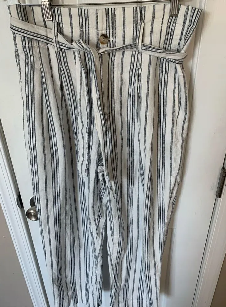 Linen-Cotton Paperbag Pants in Dark Baltic Stripe G404
