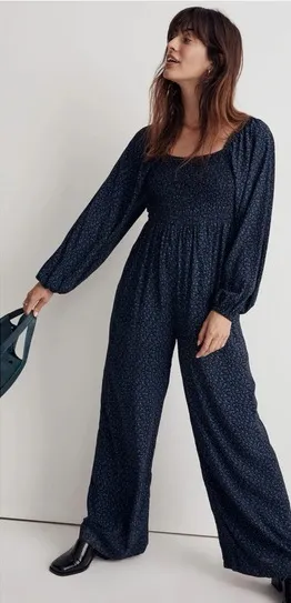 Madewell Lucie Tie-Back Long-Sleeve Jumpsuit in Carmine Floral Wide Leg The newest member of our b... Show more