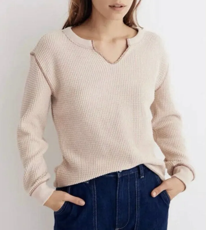 Madewell Mauve Pink Waffle Knit Thermal Tee Shirt Crop length 20.5” Size Small Like new! Excellent... Show more