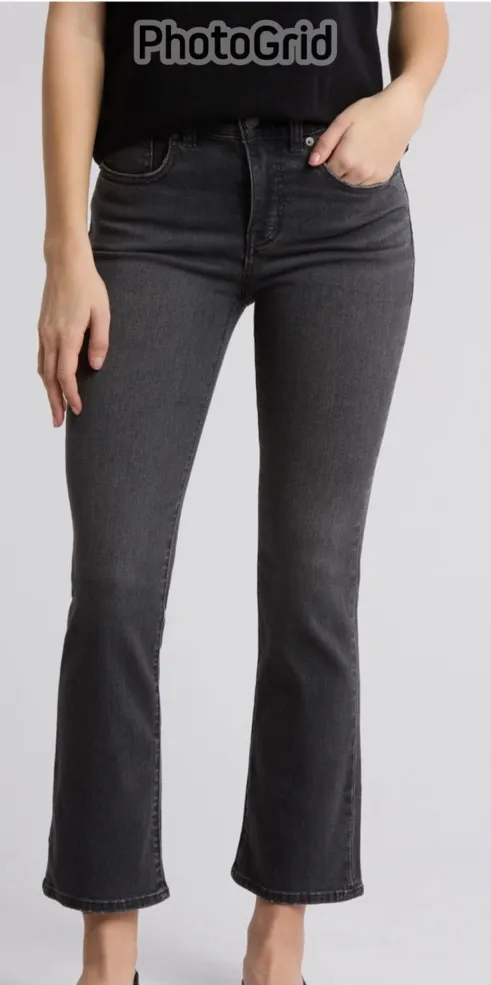 These Madewell The Mid Rise Kick Out Vintage Straight Jeans in distressed black (size 27) combine a... Show more