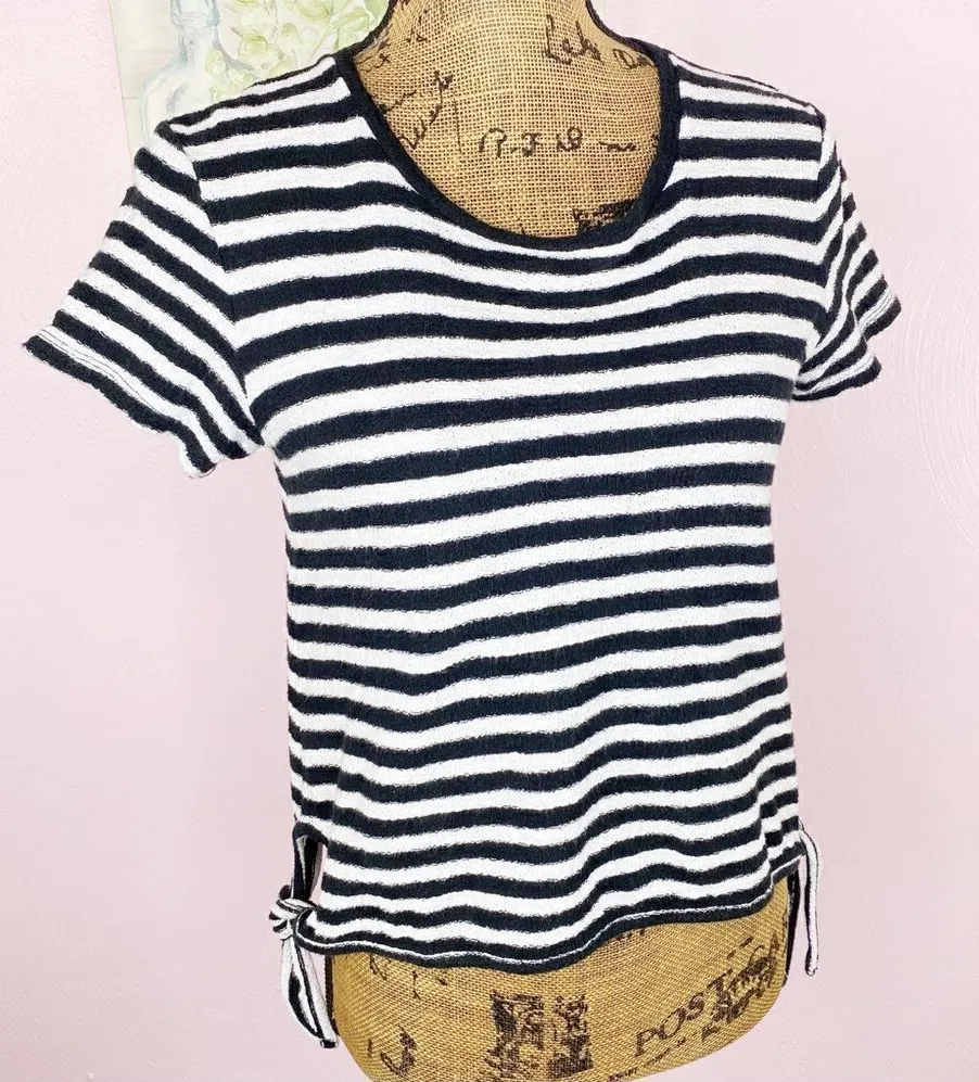 Madewell Modern Stripe Side Tie Terrycloth Short Sleeve T-shirt Black & White Size XS Black & white... Show more