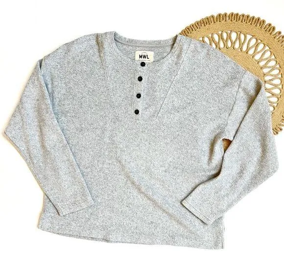 women’s small light gray henley neckline dropped long sleeves cotton blend gently used
