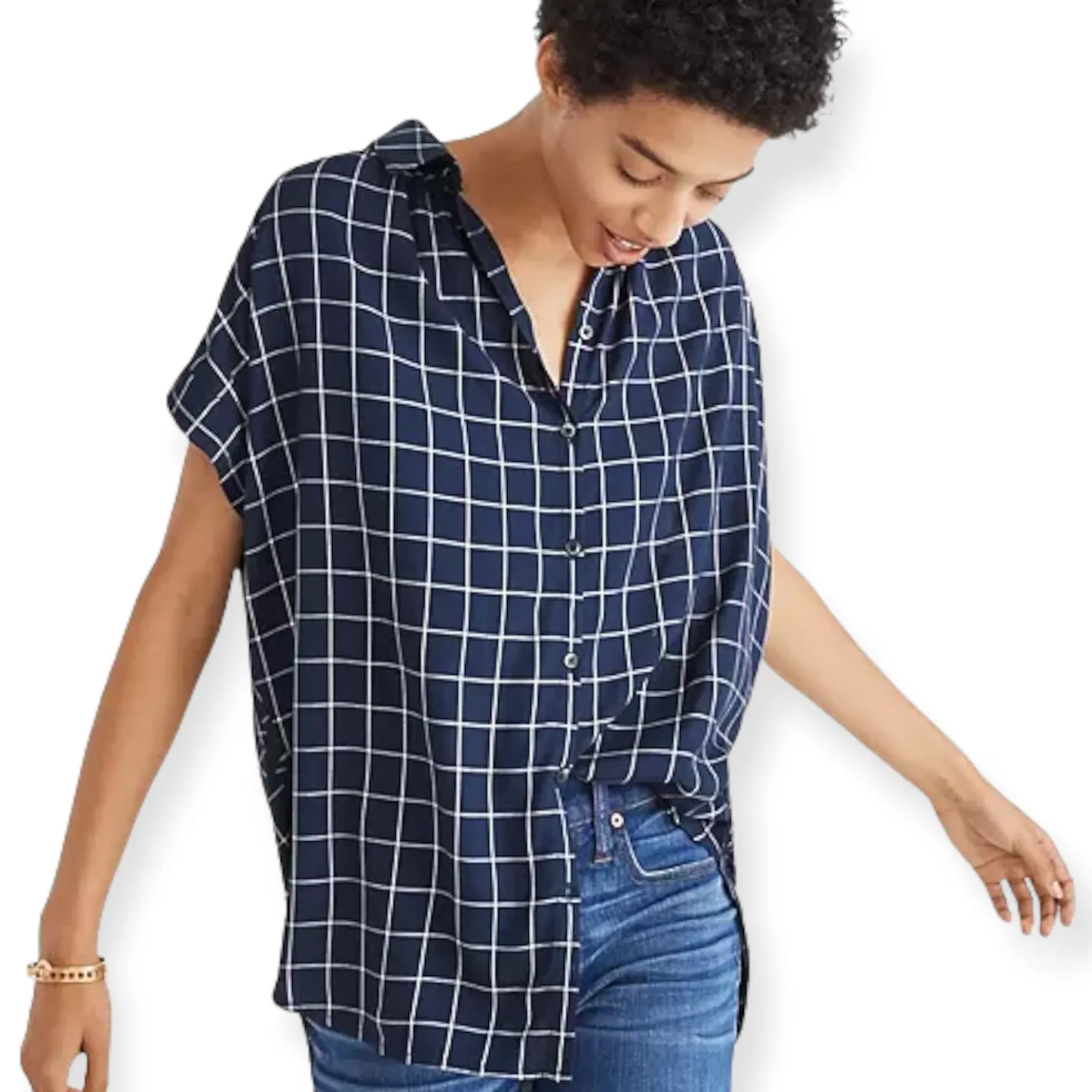 MADEWELL navy blue central shirt in windowpane short sleeve button down top Brand: Madewell Size: S... Show more