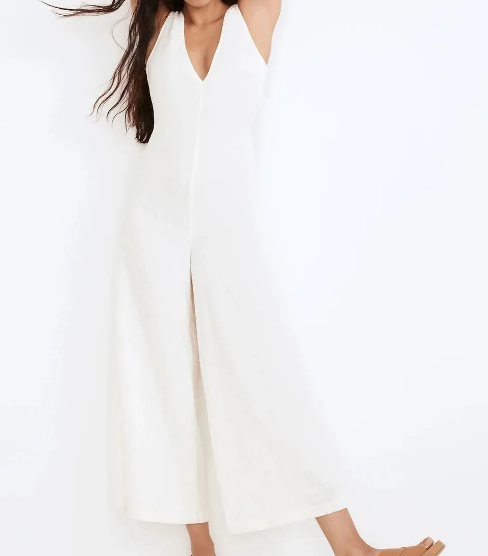 Madewell Lightestspun Kate Tie-Back Lighthouse White Cotton Cover-Up Jumpsuit. Double-Layered Cotto... Show more