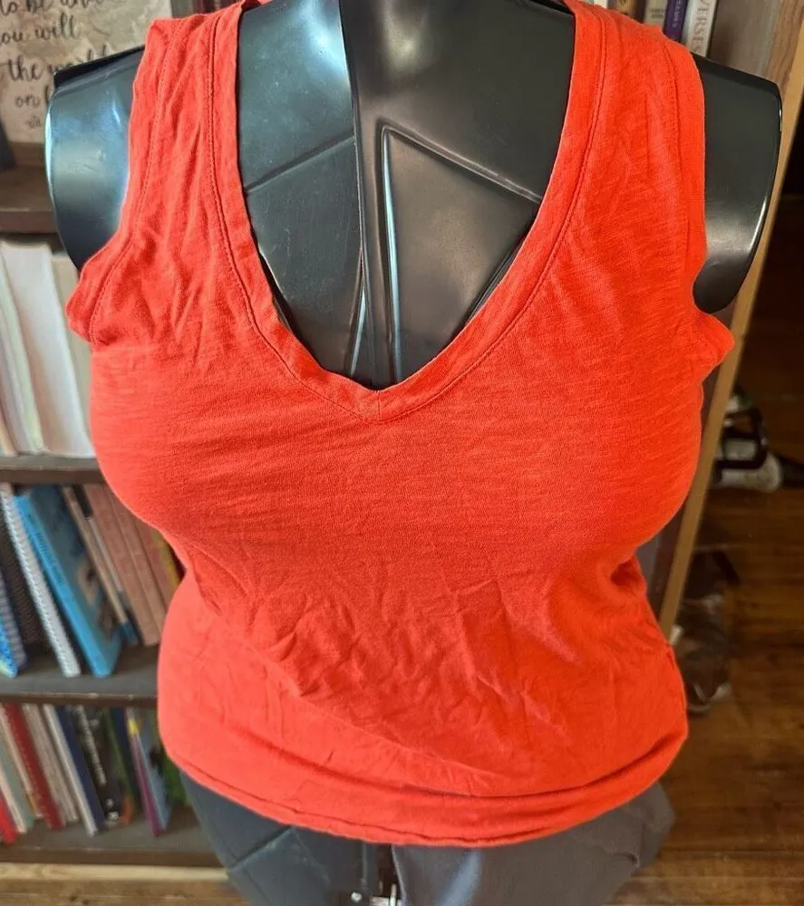 Madewell organic cotton blend, sustainable, v-neck, orange, sleeveless top. Pairs well with shorts o... Show more