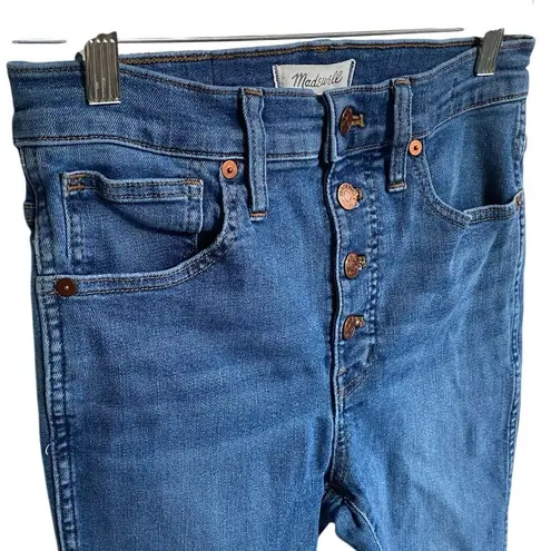 These Madewell Petite 10" High-Rise Skinny Crop Jeans in a classic blue wash are crafted from TENCEL™ blend denim for an ultra-soft, stretchy, and sustainable feel. Designed for petite frames, they feature a button-front fly, high-rise waist, and a cropped skinny leg, making them perfect for casual wear, work, or dressing up with heels. A timeless, minimalist style that pairs effortlessly with any wardrobe staple.