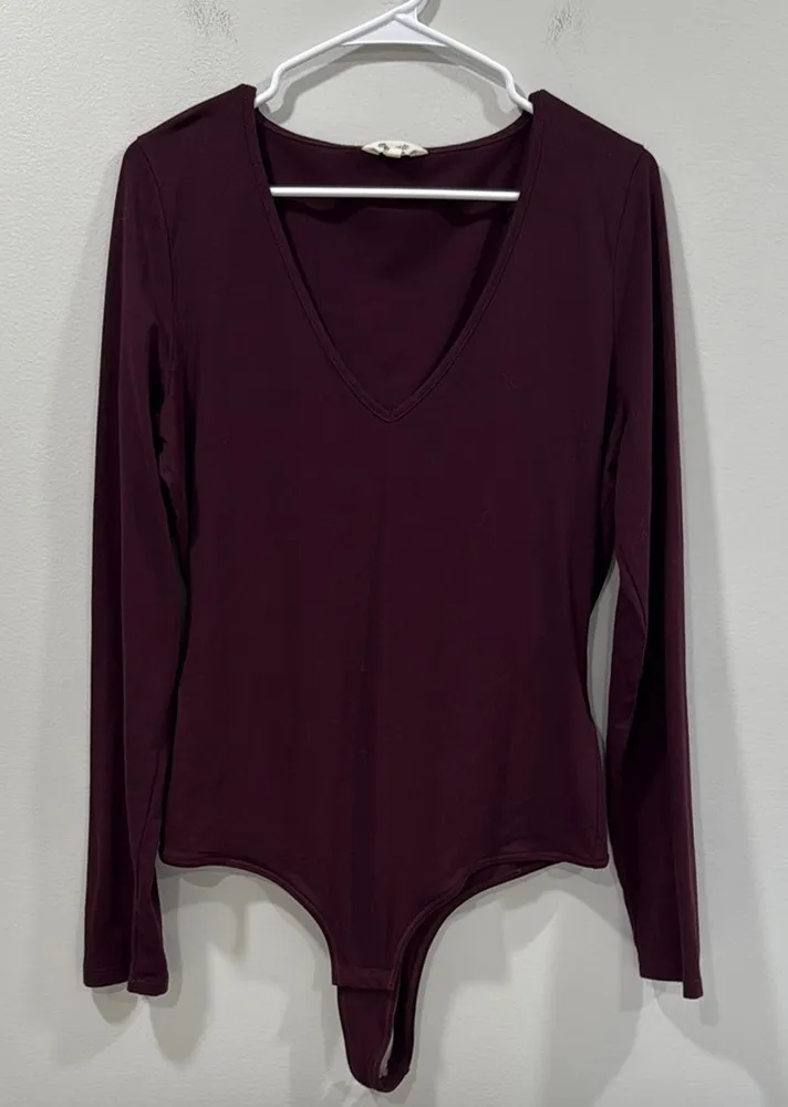 Madewell Pointelle XL Long Sleeve Burgundy Thong Bodysuit NWOT Purple - $28 - From Elizabeth