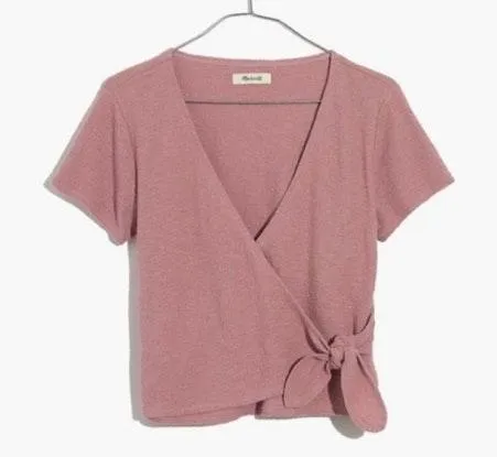 This shirt is super cute! Wraps and ties in the front. Light purple color. Perfect for summer!