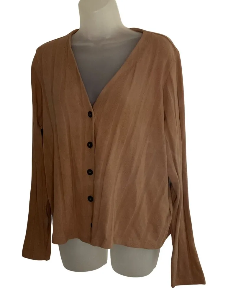 • Ribbed texture throughout • Button-front closure • V-neck style • Long sleeves for added war... Show more