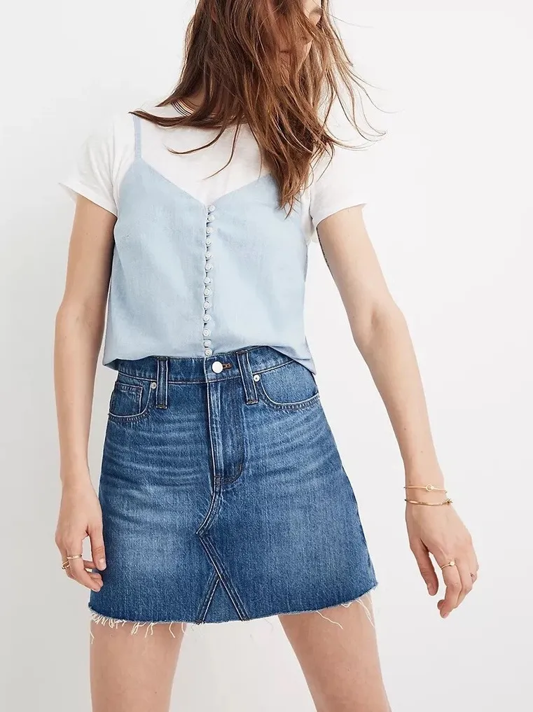 Madewell Denim skirt Raw hem line 100% cotton Machine washable 26 inch waist