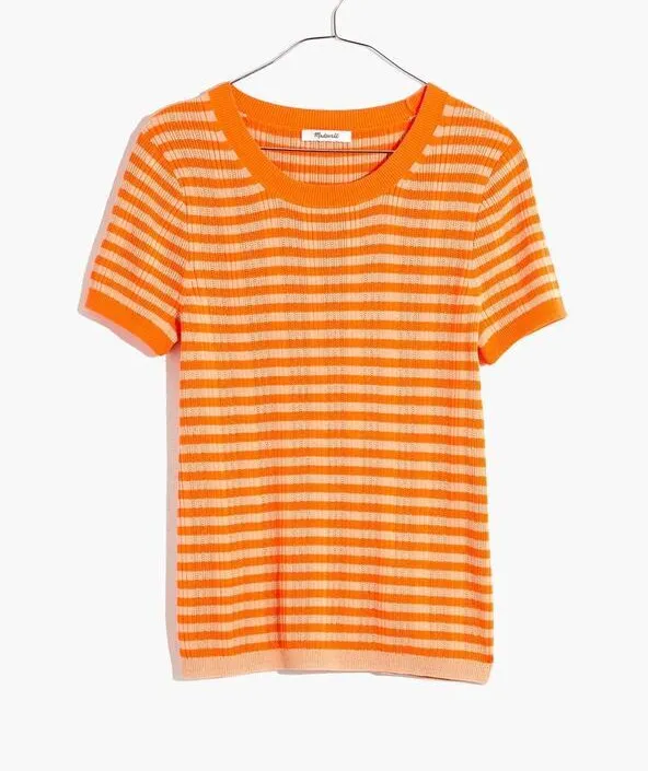 Madewell Ringer Sweater Tee in Neon Stripe Muted Shell Orange - Size Small, great preloved condition... Show more