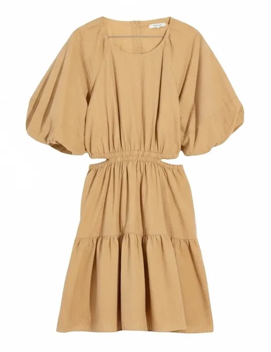 Madewell Seersucker Puff-Sleeve Cutout Mini Dress in Seed Khaki, Women’s Size Small (S). A perfectl... Show more