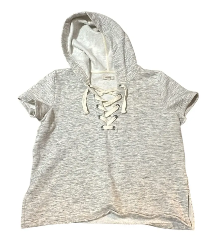 Madewell Short Sleeve Hoodie Sweatshirt Womens Medium Heather Gray Lace Up 84% Cotton Blend 16% Pol... Show more