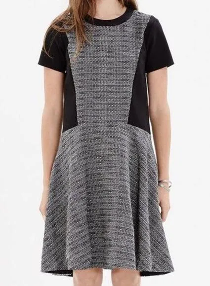 Madewell Texture Tribune Dress Black with grey tweed Short Sleeve Fit & Flare/A-line shape Sleek sha... Show more