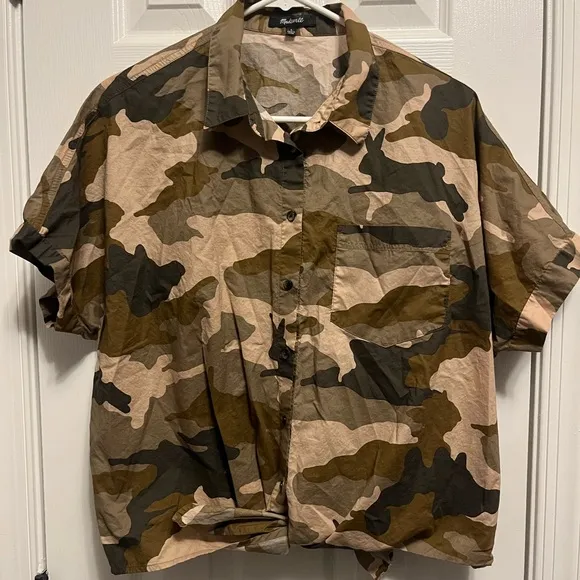 Madewell Short Sleeve Tie Front Boxy Shirt in Cottontail Camo Women Size L Size L - $26 - From Angelique