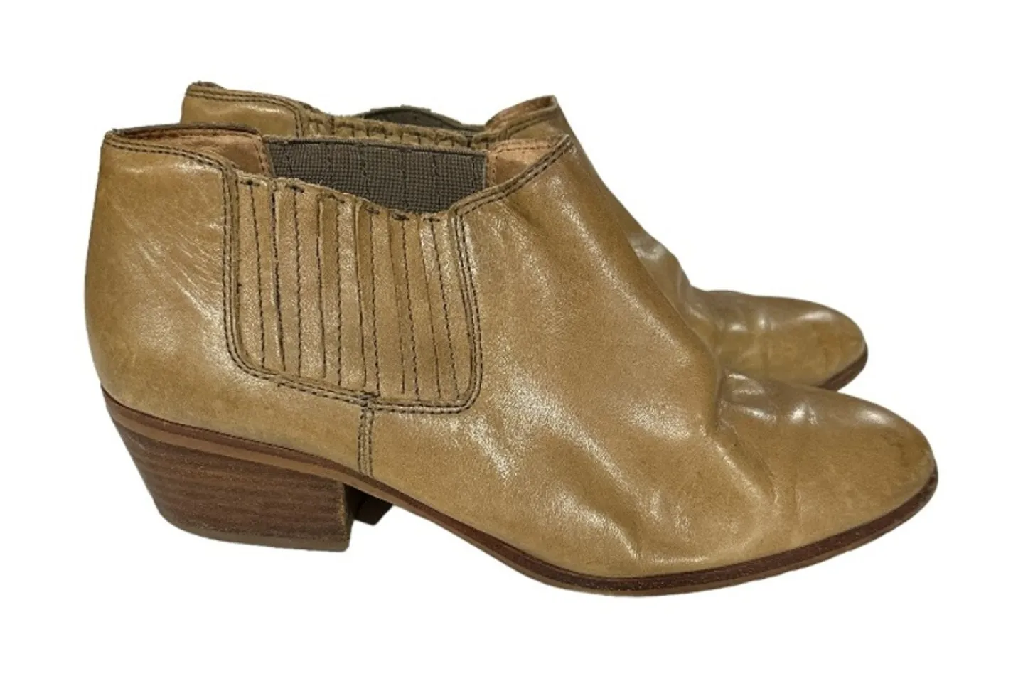 Madewell Spencer Taupe Chelsea Slip On Leather Ankle Boots Slip on Stacked block heel Chelsea style... Show more