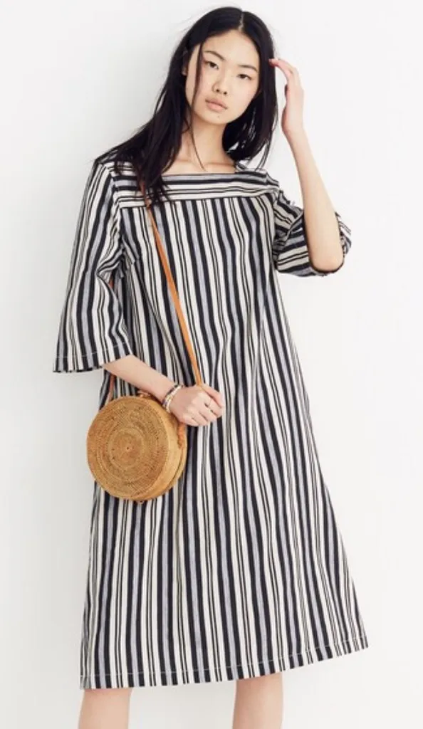 Madewell Square Neck Midi Dress Linen Cotton Blend Evelyn Stripe Dress XS New without tag Effortles... Show more