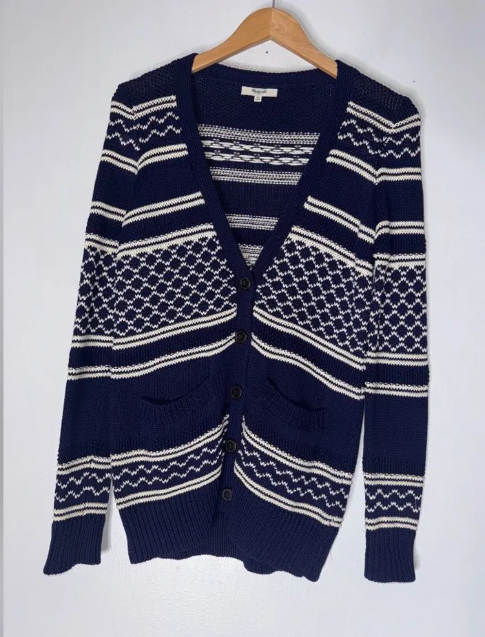 Madewell Stitchway Knit Navy Blue Stripe Cardigan Sweater Women Size XS‎ - $30 - From Crystal