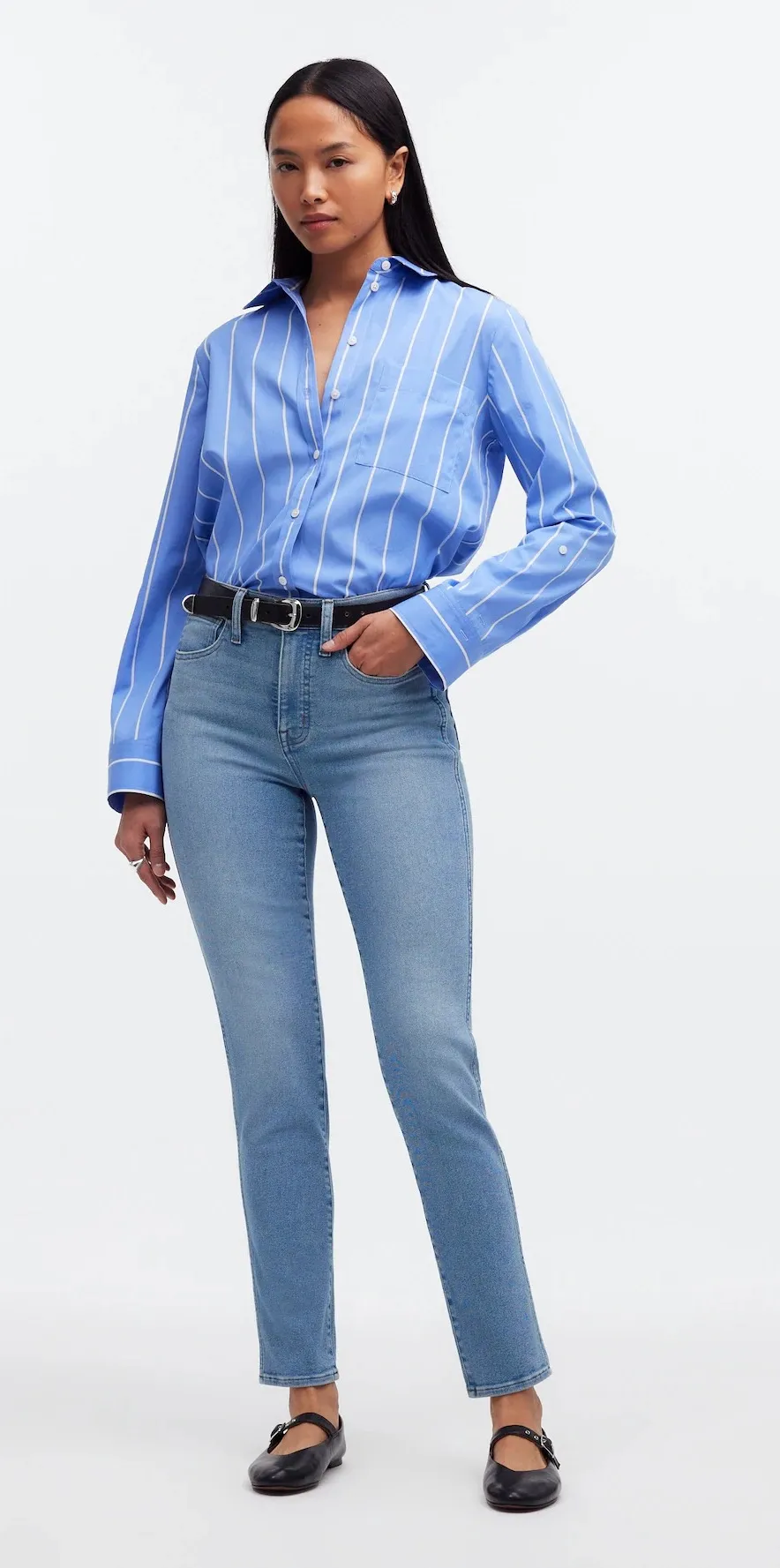 While the American denim brand Madewell is best-known for its best-selling skinny jeans and straight-leg jeans, they also design a range of basic tees, classic blouses, timeless leather bags, and versatile shoes to complete your look.