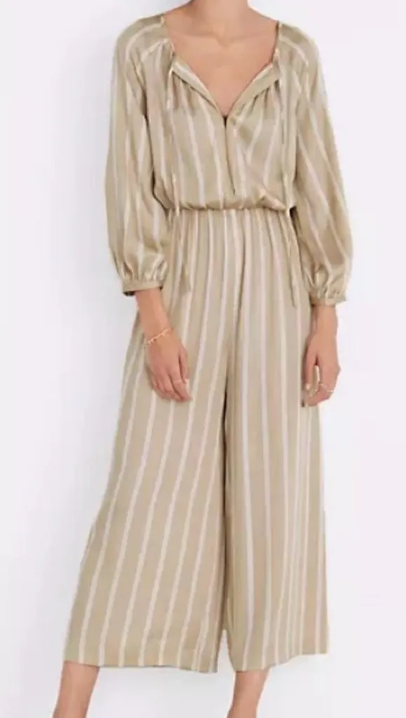 Madewell Striped Cyprus Gold Striped Jumpsuit Wide Leg Cropped Size Small Tan - $34 - From Christie