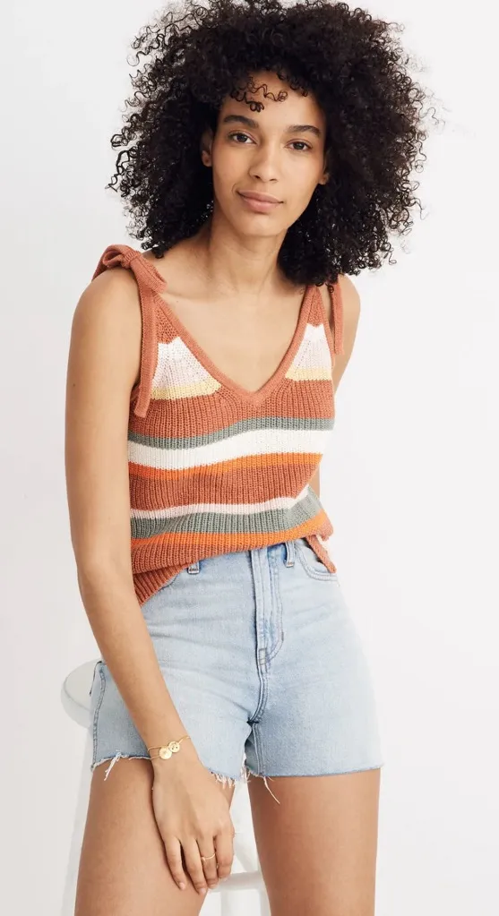 I’m selling a Madewell Striped Grandfield Tie-Strap Sweater Tank Top in Sweet Dahlia Size Small for... Show more