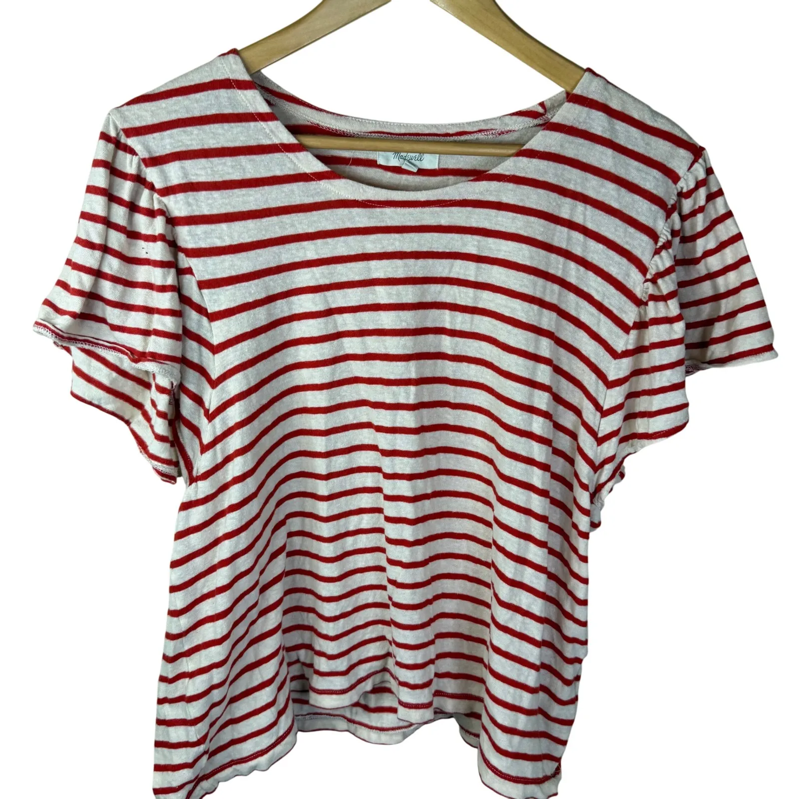 A classic addition to your casual wardrobe: a red and white striped T shirt. This garment features a... Show more