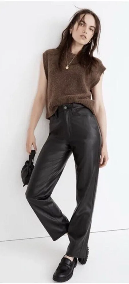 Madewell The Perfect Vintage Straight Leg Jean Black Faux Vegan Leather Edition Pants High Rise Wais... Show more
