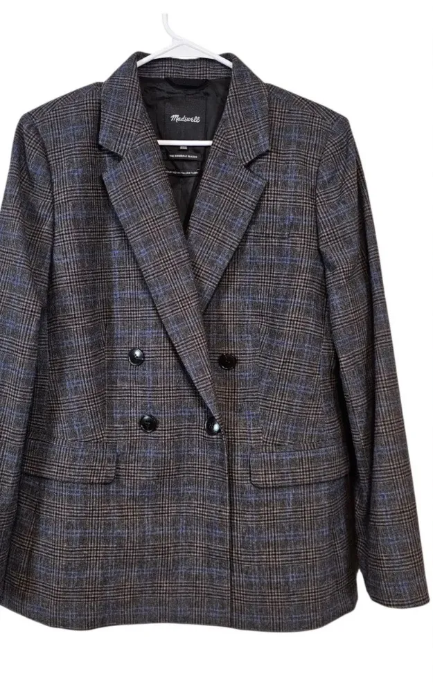 Madewell The Rosedale Blazor Double Breasted Plaid Wool Preppy Academia Size 00 Pit to Pit 17” Lengt... Show more