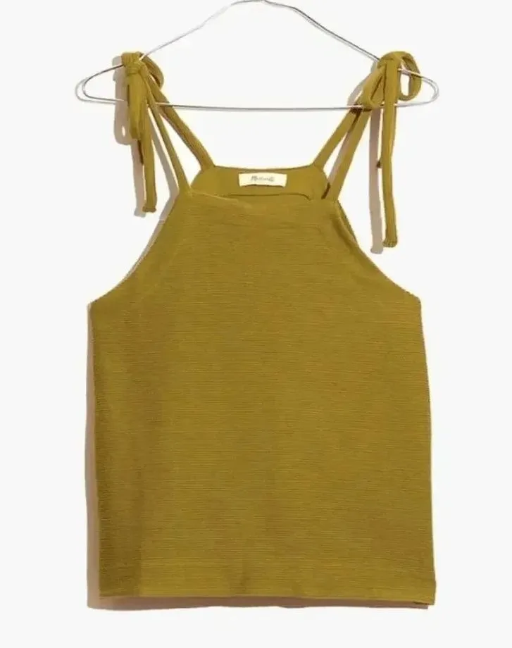 Madewell Tie Shoulder Ribbed Tank Top Size Small Spiced Olive Green color Made of touchable ottoman... Show more