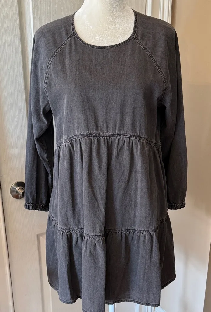 Easy, throw-on style from Madewell in a washed charcoal gray. This tiered babydoll tunic dress featu... Show more