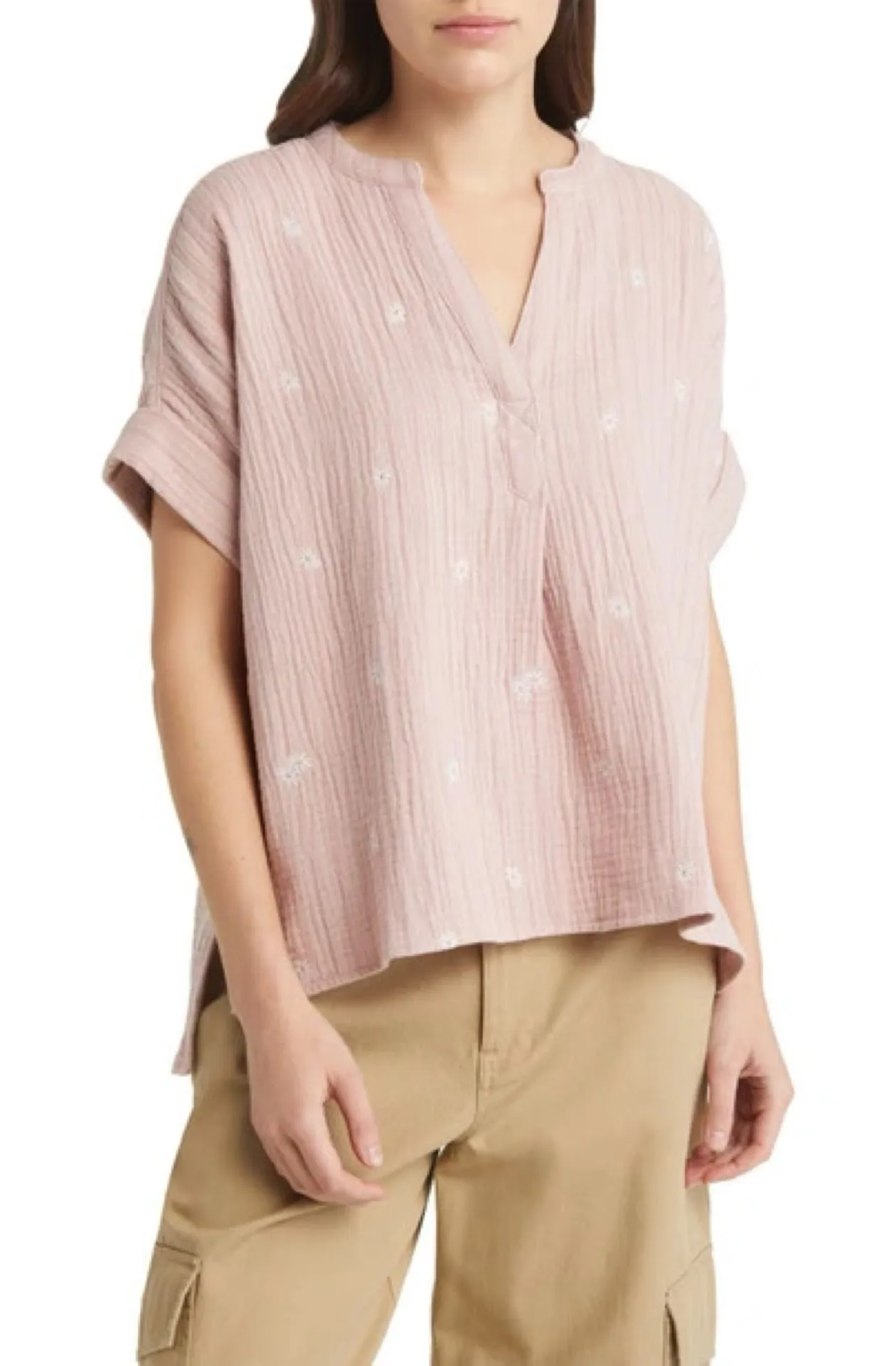 Madewell Top Embroidered Lakeline Popover Shirt Floral Daisies Pink Sz S NWT New Size S Body: 100% c... Show more