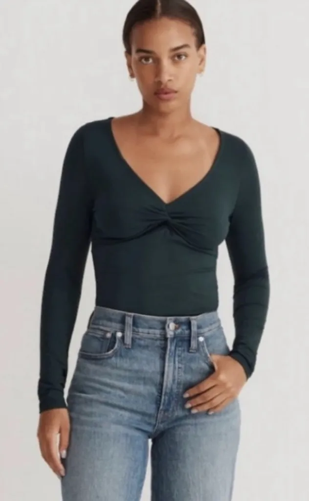 Madewell Twist Front Long Sleeve Top Green XS Fitted V-Neck Condition: Like new — worn once. Excell... Show more