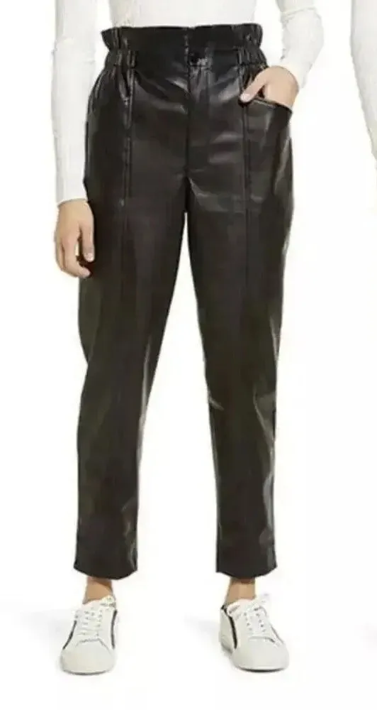 New without a tags Madewell Vegan Faux Leather Paperbag High Waisted Pants in Black Women's Size 2 B... Show more