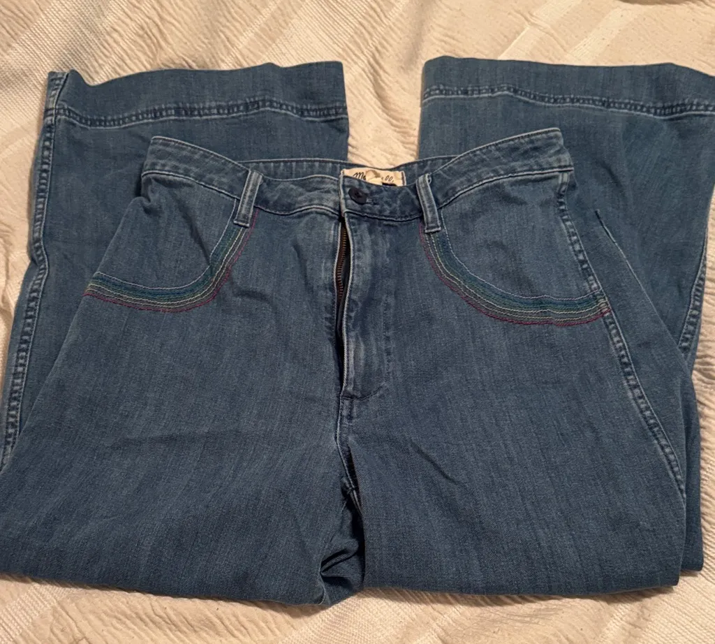 Madewell Wide Leg Cropped Jeans with Rainbow Embroidery Size 30 - $55 - From Brooks