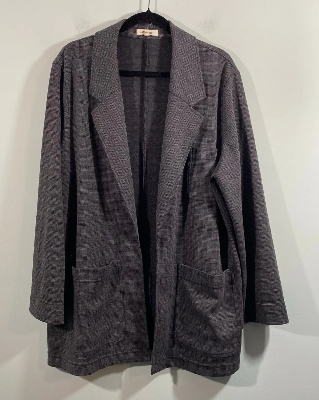 Madewell Women Grey Gravel Glen Plaid Oversized Open Front Knit Blazer - Size XXL - Excellent pre-ow... Show more