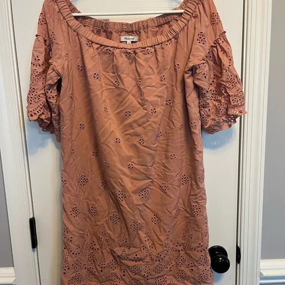 MADEWELL Women's 8 Dusty Rose Eyelet Lace Off The Shoulder Mini Dress BOHO - $17 - From Angelique