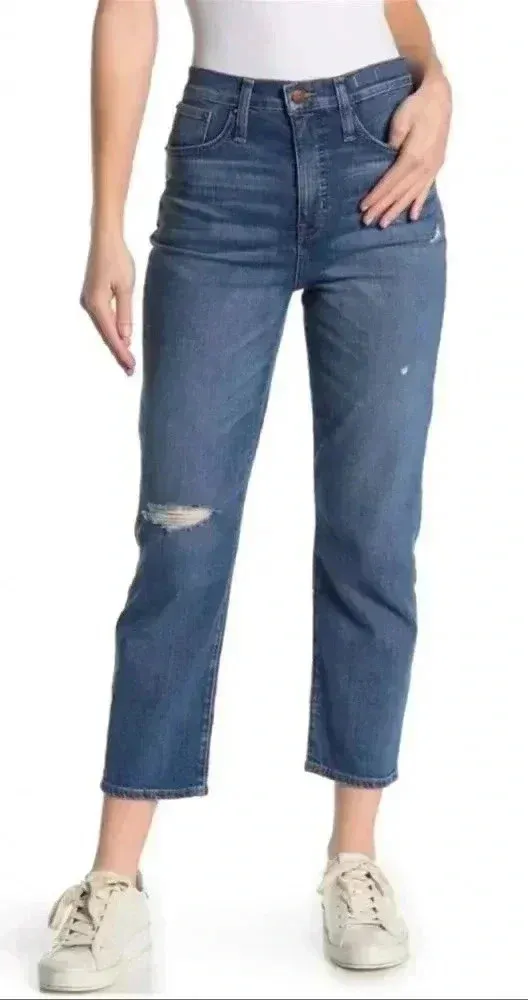 Madewell Womens Blue Distressed Cropped Classic Straight Leg Jeans Size 32 - $40 - From Isabel