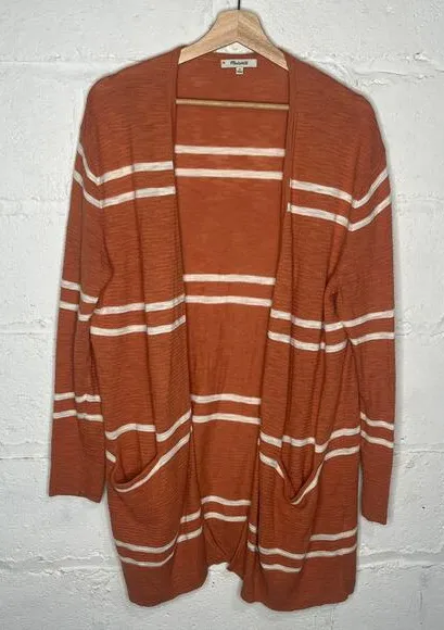 Madewell Women's Cotton Blend Orange White Stripe Summer Ryder Long Sleeve Open Front Cardigan Sweat... Show more