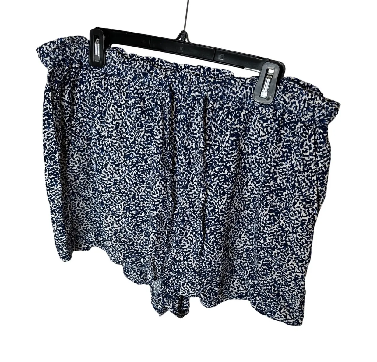 Madewell women's shorts in a navy and white abstract print. These shorts feature a comfortable paper... Show more