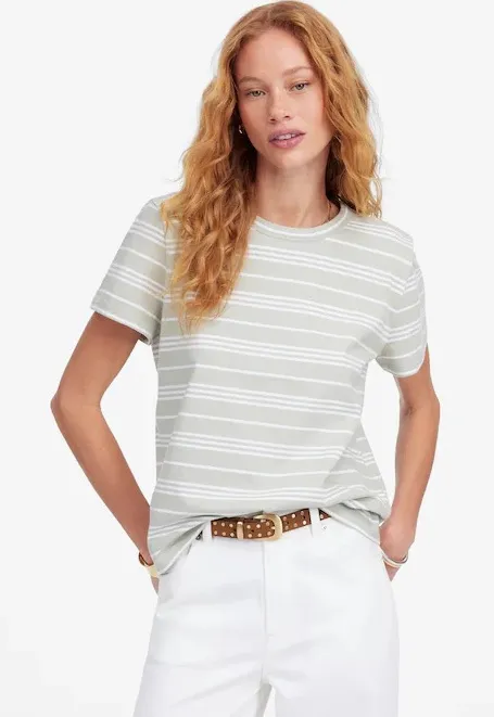 Brand new Madewell women’s The Perfect Crewneck Tee in Allday Jersey with short sleeves in a pale gr... Show more