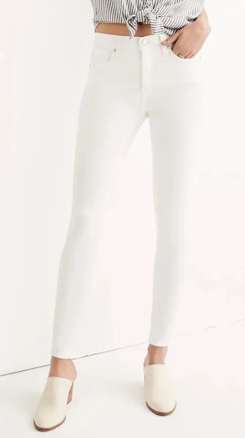 Description: White, mid-rise skinny jeans from Madewell. Size: 25 Fabric: 91% cotton, 7% polyeste... Show more