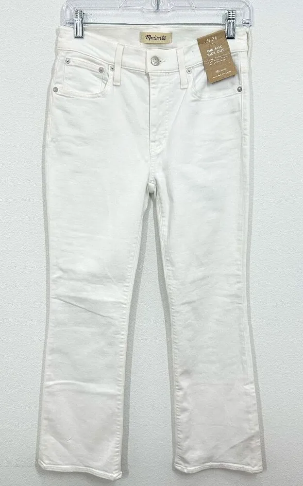 Madewell Women's Size 26 Mid Rise Kick Out Crop White Denim Jeans NWT Summer Brand New with Tags in... Show more
