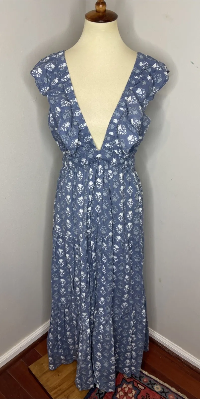 Medium No fabric tag but feels 100% cotton armpit to armpit- 18.5 in waist across- (has elastic so can go bigger)- 15 in shoulder to bottom hem- 52 in lined- no pockets EUC- no flaws to note