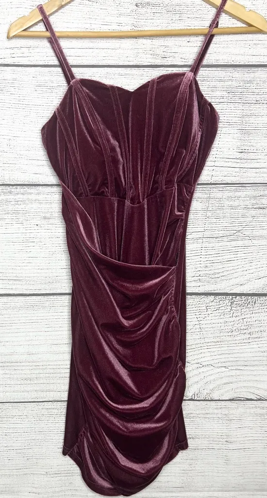Madrag Pink Velvet Draped Bodycon Mini Dress Women’s Size Small Approximate flat lay measurements: Pit to pit: 15 inches Waist: 13 inches Length from shoulder to hem: 33 inches Valentine’s Day flirty sexy fun velvet velour soft draped ruched form flattering going out date night girls night out party Perfect for special occasions, this dress features a flattering draped design and a pretty color that stands out.